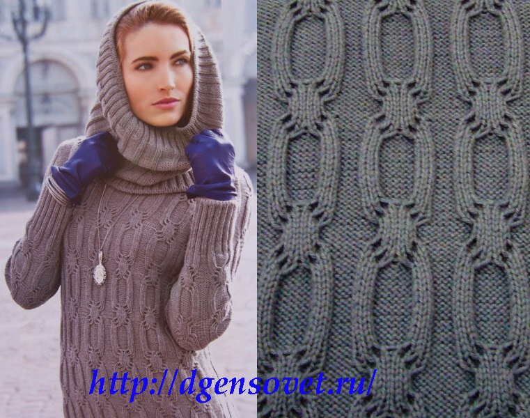 Материалы: для туники «пряжа Merinos Sei» 800 (850) грамм, для воротника 350 грамм; спицы № 4, № 4,5.